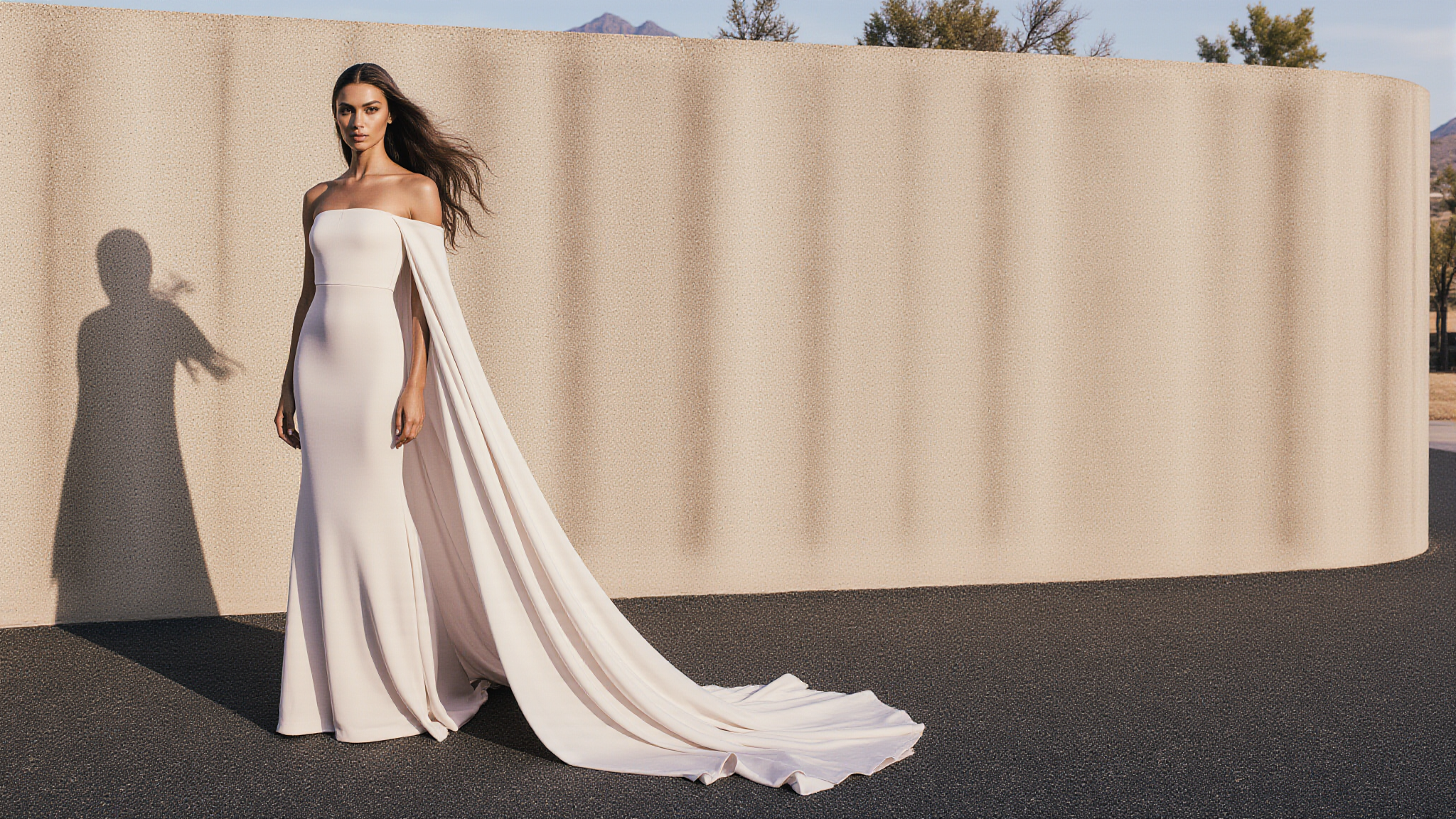 Elegant Strapless Mermaid Wedding Dress with Long Train and Flowing Cape – Maison Bridal