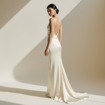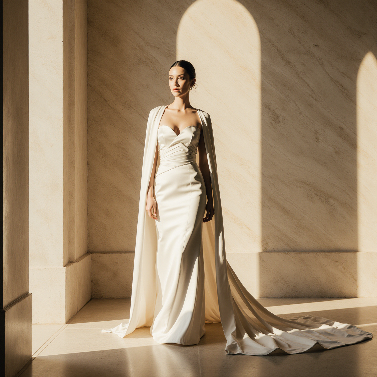 We use only the finest materials — silk, satin, lace, and tulle — sourced from prestigious textile houses for a naturally elegant drape.