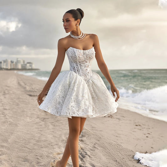 Simple Pleat Strapless Short/Mini Satin A Line Wedding Dresses Custom Made Bridal Grown 2025 Vestido De Noival
