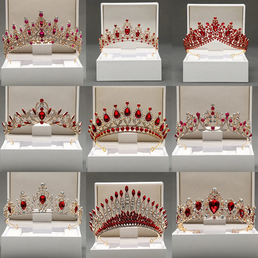 Itacazzo Bridal Headwear Crown Red Classic Tiras Suitable for Women's Wedding and Birthday Parties (Excluding Box Props)