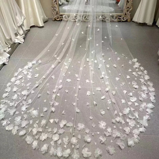 Ivory Bridal Veil Long Cathedral Wedding Veil 3D Flowers Floral Lace Petals Veil for Bride with Comb Velos De Novia