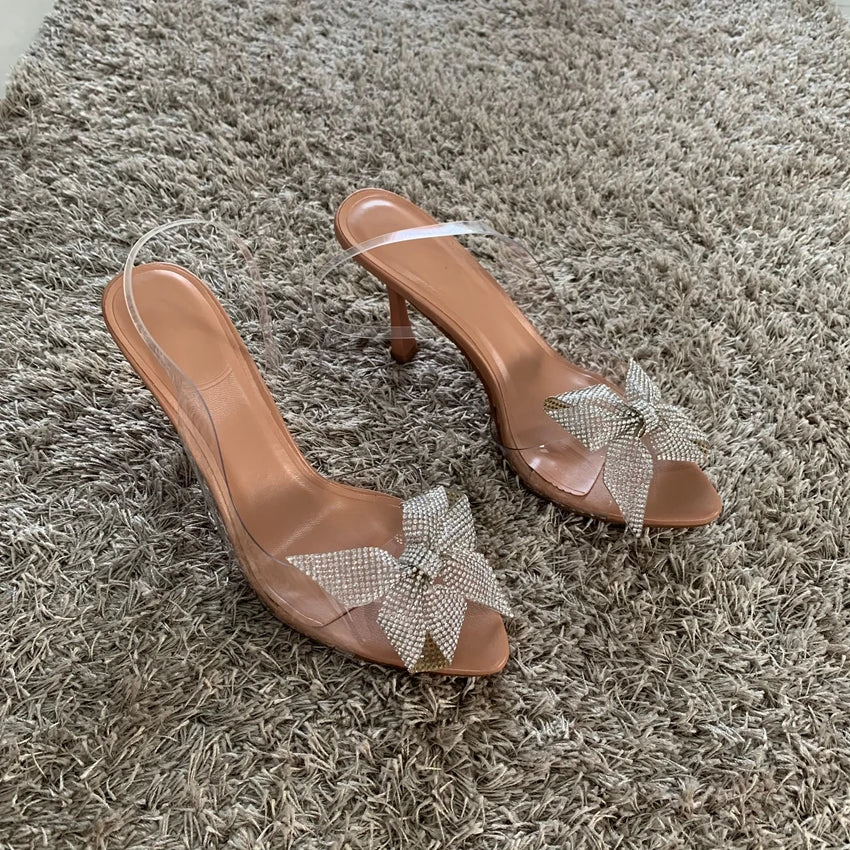 2024 Womens High Heels Sandal Shoes Woman Rhinestone Bow Sandals Women Pumps Summer Party Slippers Butterfly Knot Wedding Shoe