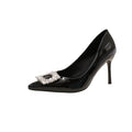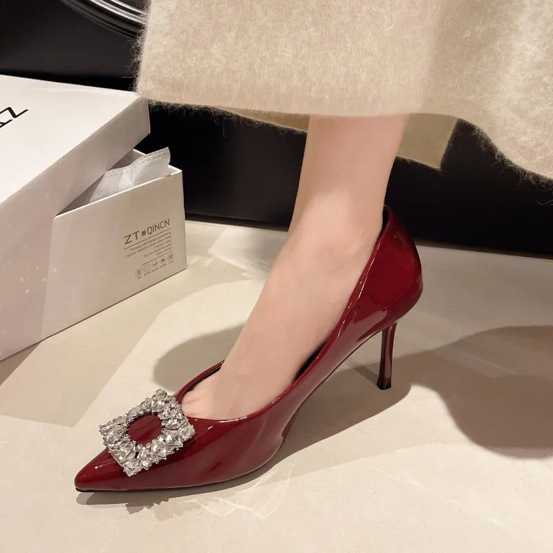 2025 Autumn Fashion New Sexy Banquet High Heels - Comfortable Crystal Square Buckle Pair with Dress Pointed Toe Women's Shoes