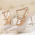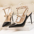 2025 High Heels Rivets Shoes Fashion Buckle Studded Stiletto Sandals Summer Shoes Women Pumps Sexy Point Toe Ladies Dress Shoes