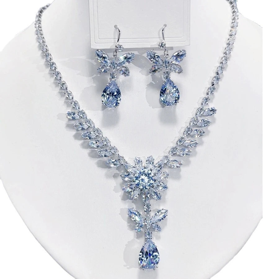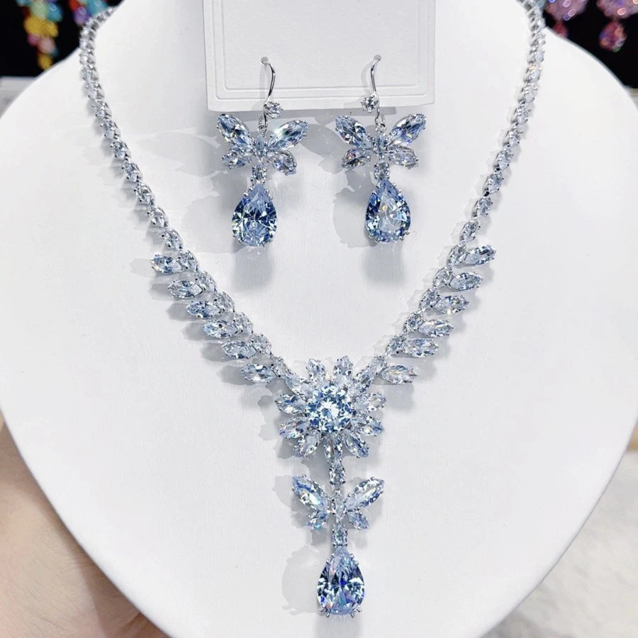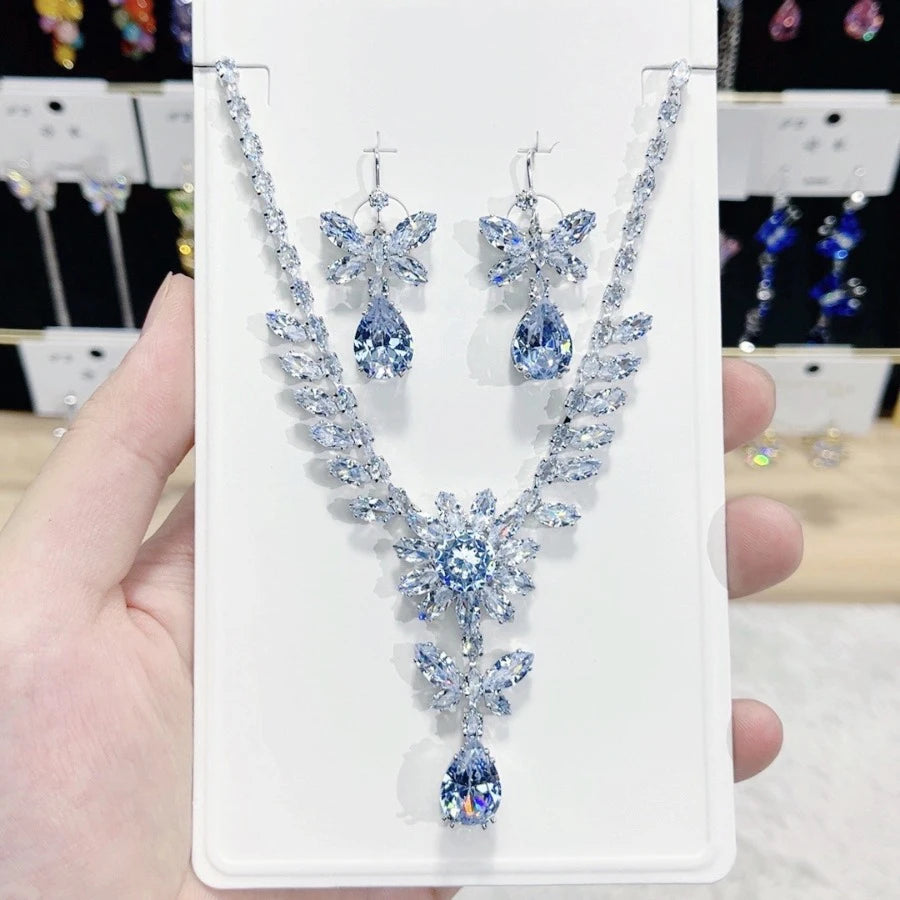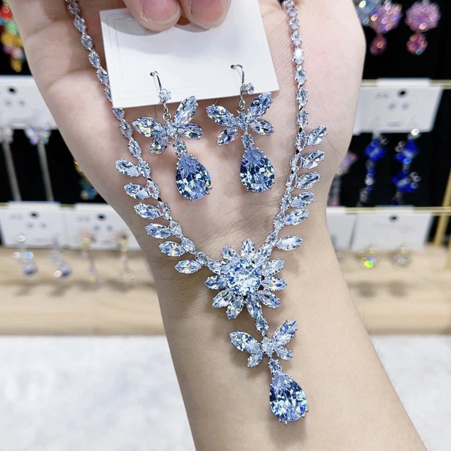 3pcs Baroque Light Luxury Cubic Zirconia Jewelry Set Dewdrop Necklace Earrings Plated Stackable Bride's Wedding Jewelry