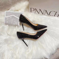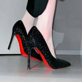 9cm Super High Heels Shoes 2025 Sequin Black Sexy Red Sole Pointed Thin Single stiletto heel shoes