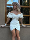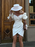 A Little Wedding Dresses V-Neck Off-The-Shoulder Short Bride Dress Satin Lace Up Simple Dresses For Women 2025 Robe De Mariee