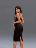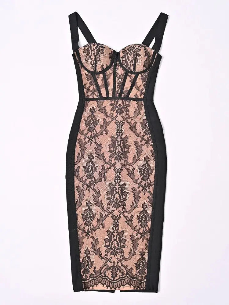 BEAUKEY Sexy Vintage Quality Black White Lace Bandage Evening Dress Women Summer Party Bustier Split Ladies Vestido Sexy Dress