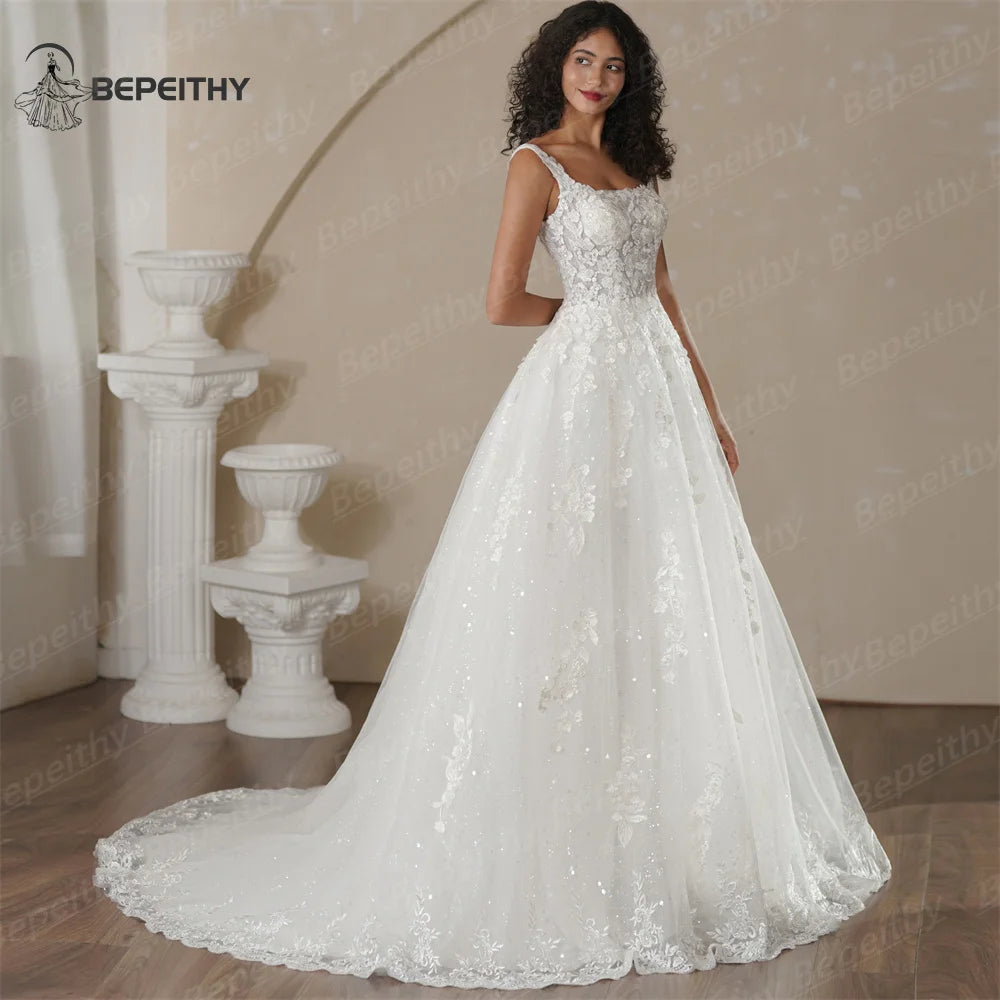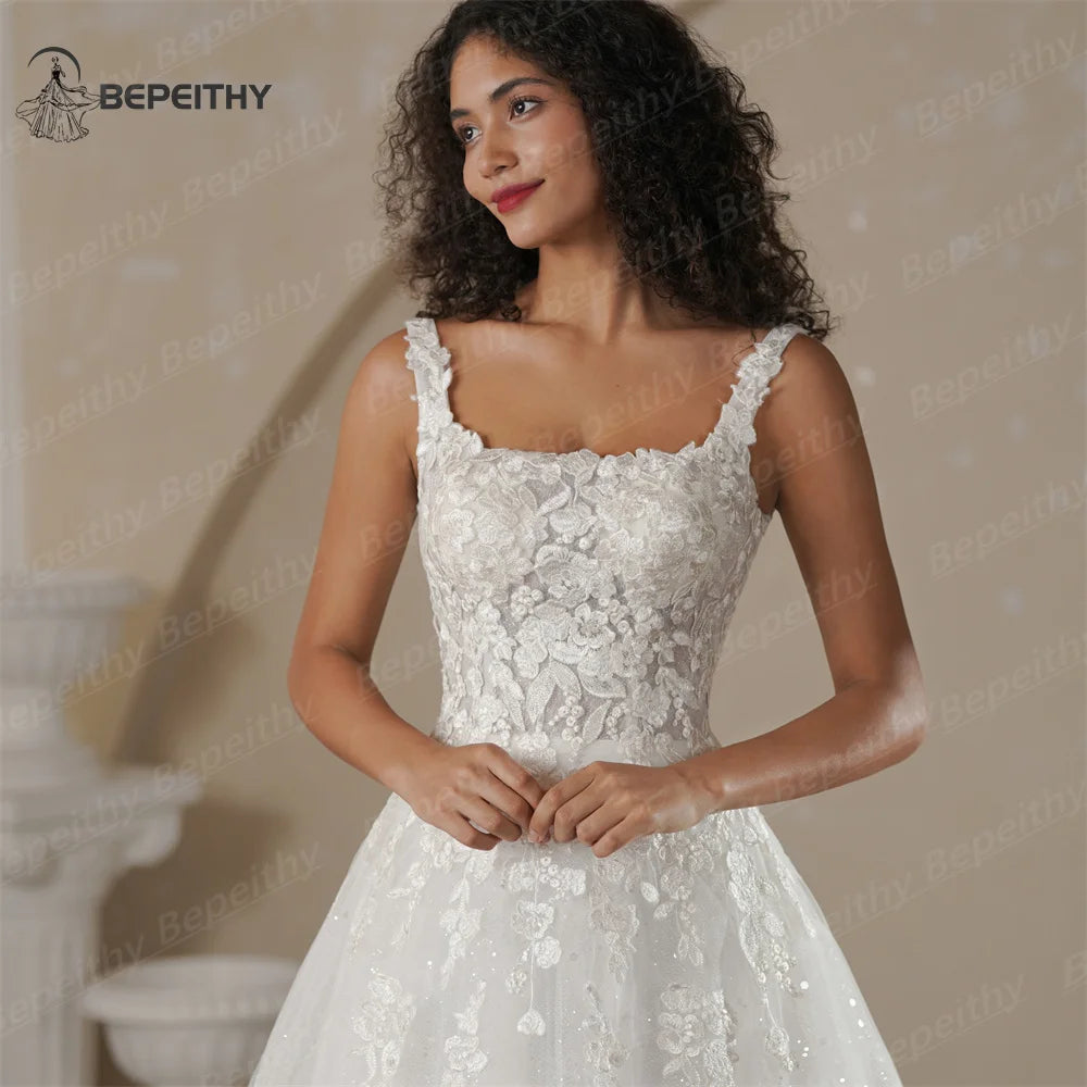 BEPEITHY Customized Beach Lace Wedding Dresses 2025 For Women Backless A Line Court Train Sexy Sleeveless Bride Boho Bridal Gown