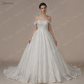BEPEITHY Customized Luxury Strapless A Line Glitter Wedding Dresses Off The Shoulder Women Ivory Bling-Bling Bride Bridal Gown