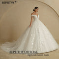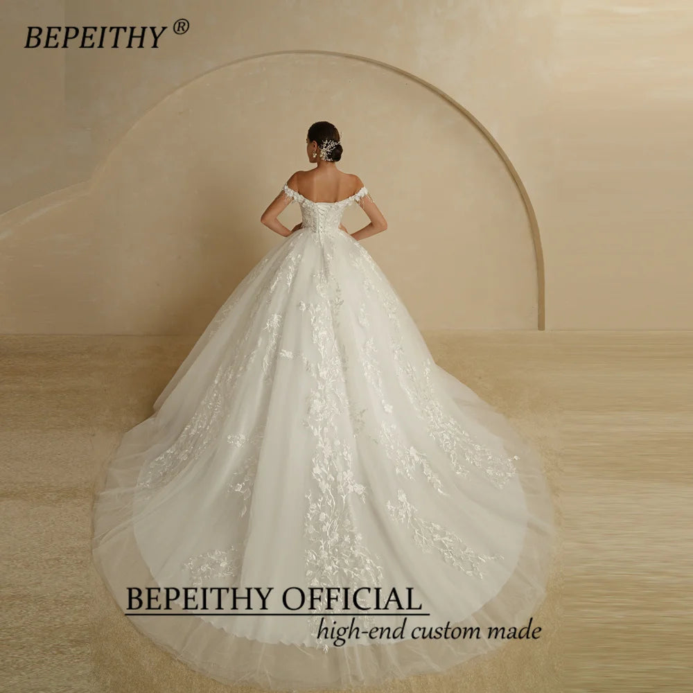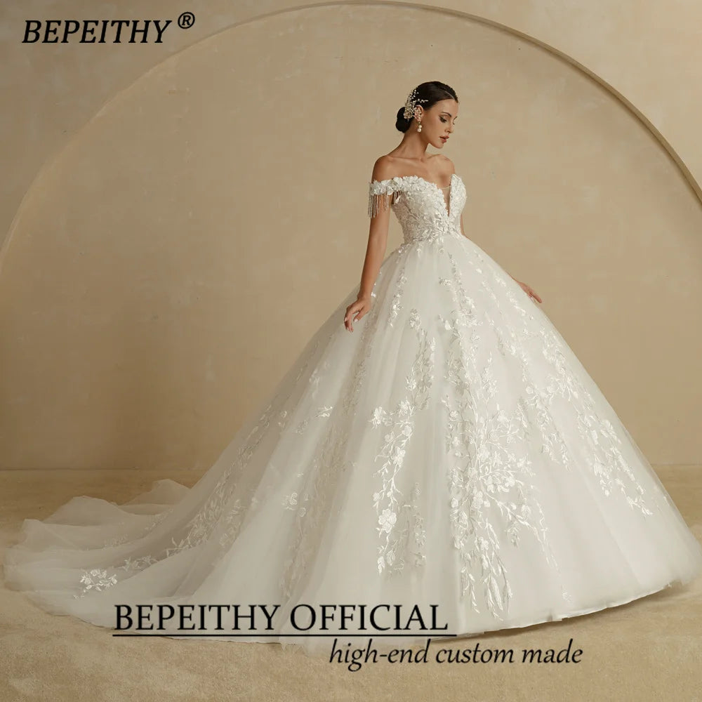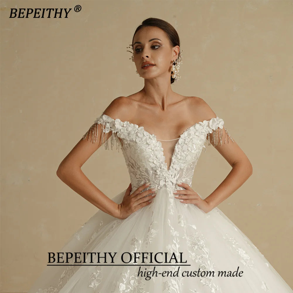 BEPEITHY Customized Off Shoulder Sleeveless Flore Princess Wedding Gown 2022 For Women Cheap Online V Neck Lace Bridal Dresses