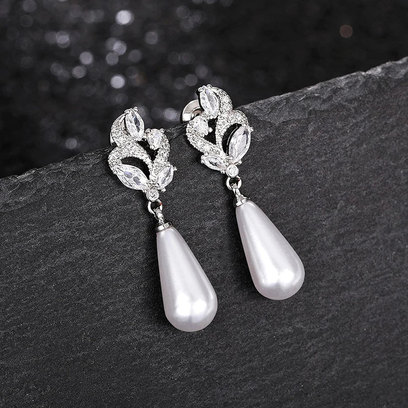 CAOSHI Aesthetic White Water Drop Shaped Imitation Pearl Drop Earrings for Women Temperament Sweet Wedding Jewelry Accessories