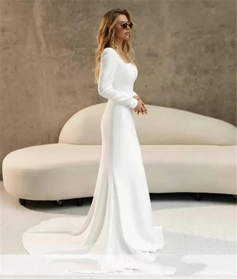 Long Sleeve Square Neck Satin Wedding Dress – Minimalist Elegant Bridal Gown | Maison Bridal