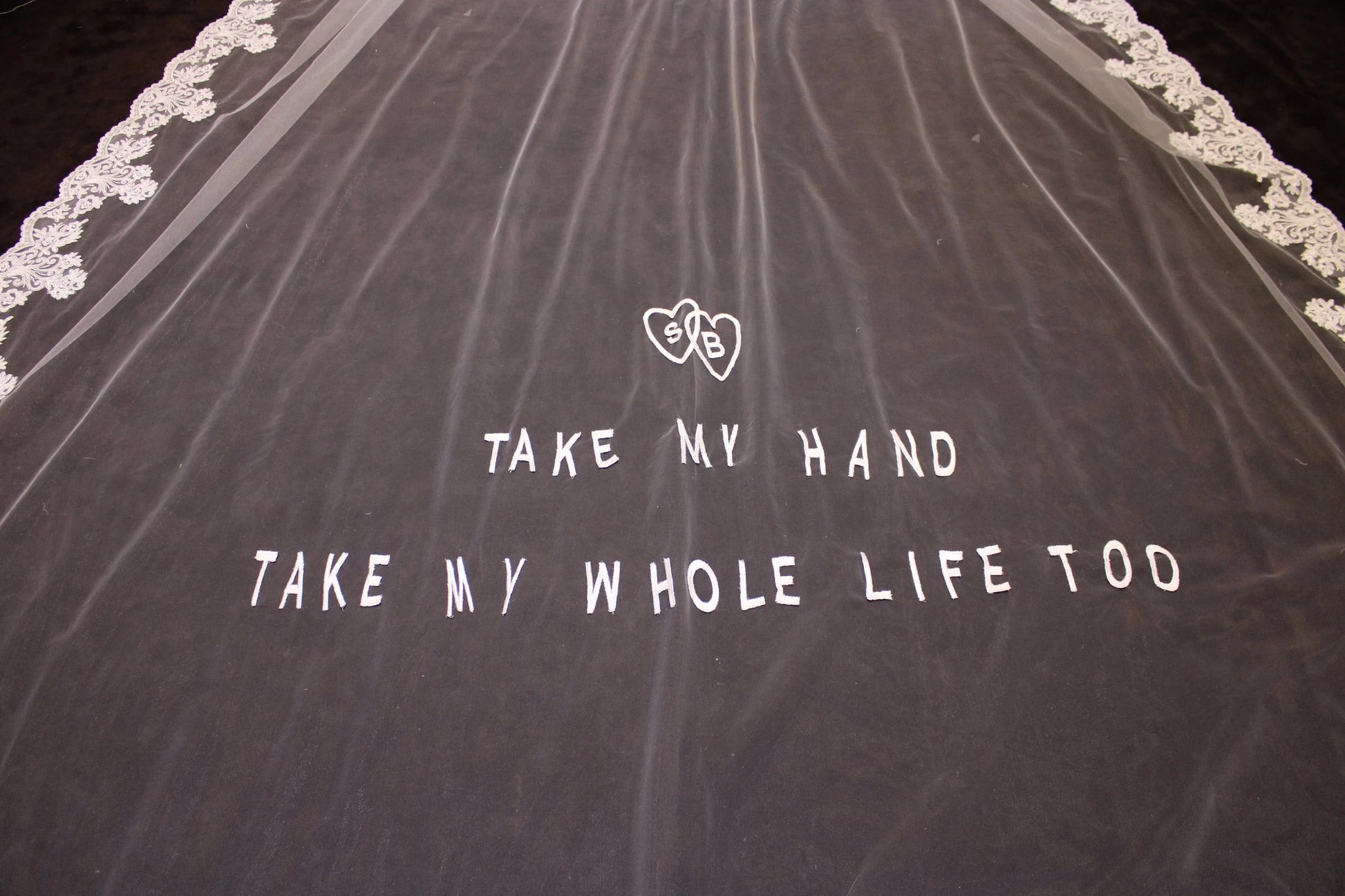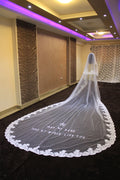 Custom Handwritten font embroidered veil Lace Bespoke Veil Embroidery Cathedral chapel length personalized blusher