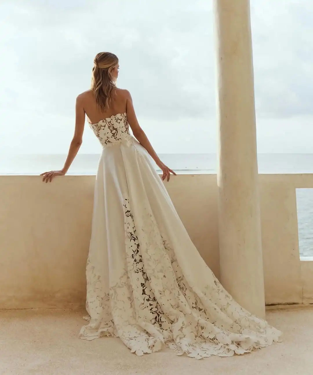 Strapless Corset Floral Lace Wedding Dress – Luxury A-Line Bridal Gown with Embroidered Details | Maison Bridal
