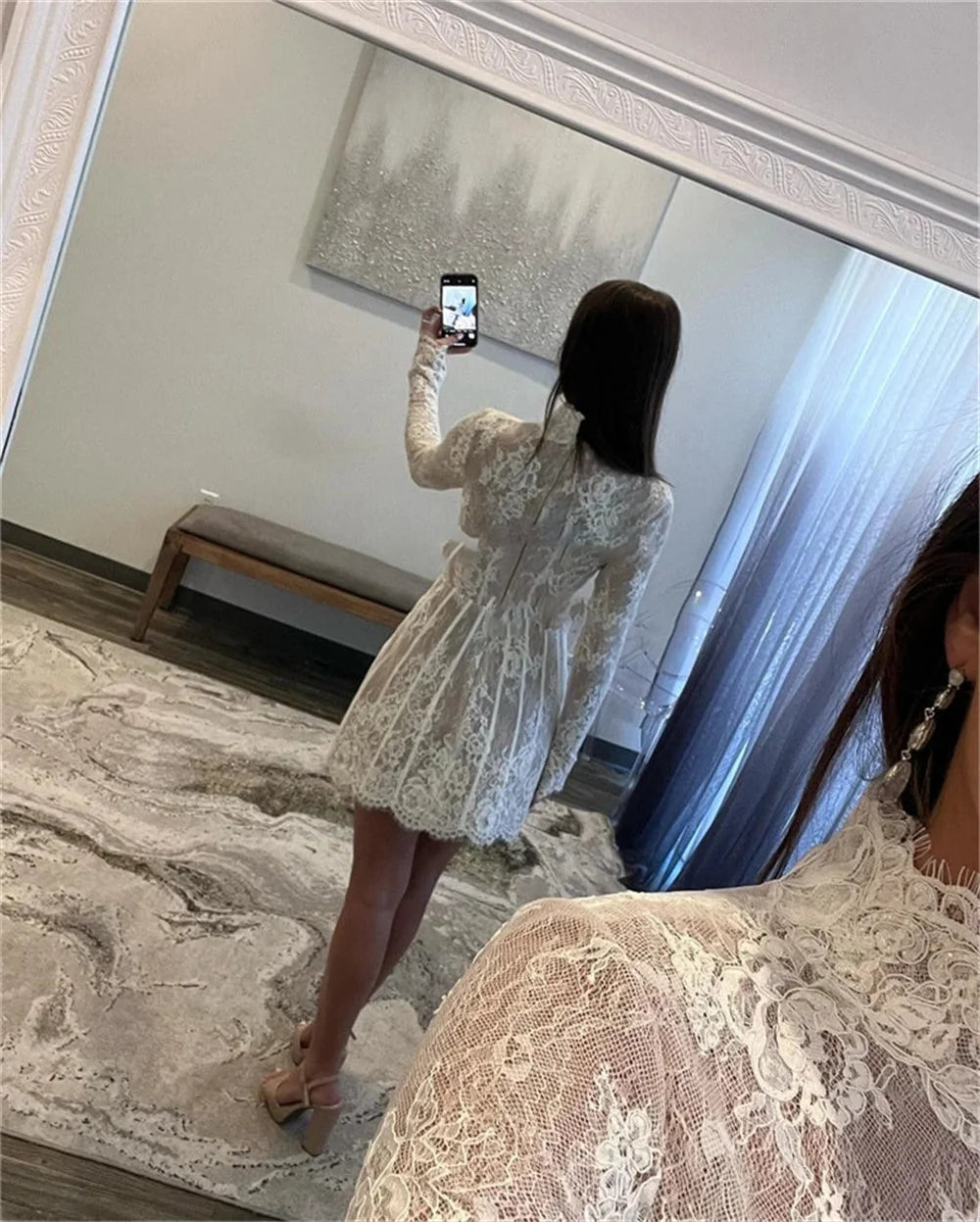 Customized Ivory Mini High Neck Lace Appliques Wedding Dress Long Sleeves vestidos de novia Zip Back Short Gown For After Party