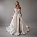 Off-Shoulder Lace Corset Satin Wedding Dress – Luxury Ball Gown with High Slit | Maison Bridal