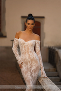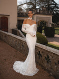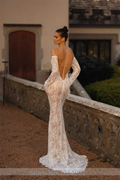 Customized Luxury Lace Pleated Mermaid Beaded Wedding Dress for Women Backless Long Sleeve Wedding Bridal Gown