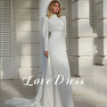 Customized Modern High Neck White Chiffon Wedding Dress Women Long Lantern Sleeve Pleats Sheath Bride Gown Button Sweep Train