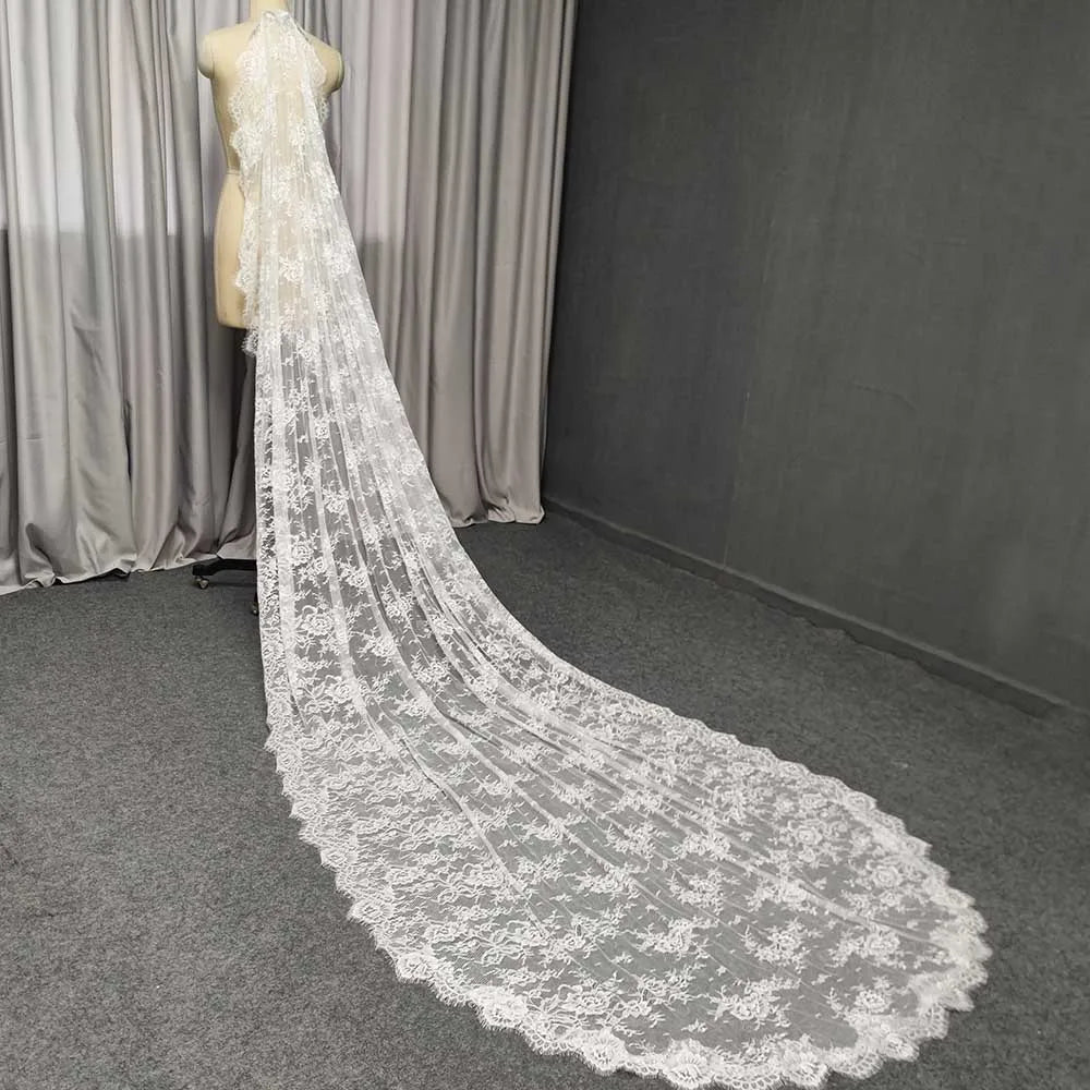 Customized Romantic Soft Lace Wedding Veil Eyelash Lace 3M Long Ethereal Bridal Veil with Hidden Comb Mantilla Veil