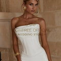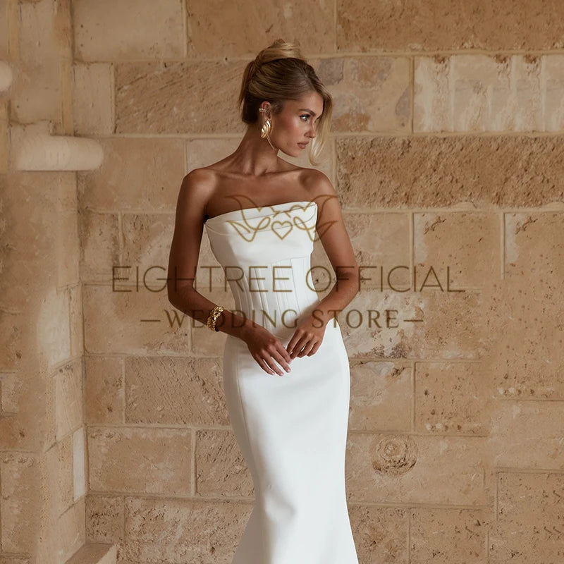 Eightree Boho Mermaid Wedding Dresses Strapless Sleeveless Sweep Train Satin Bridal Dress Simple Wedding Prom Gowns Customized