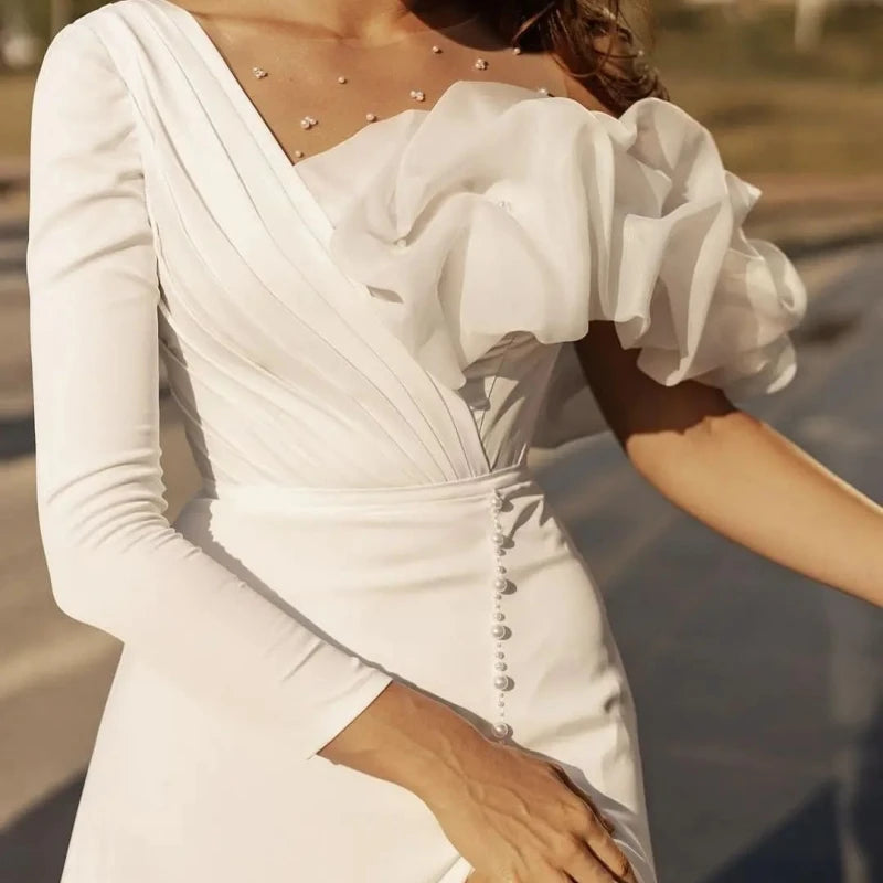 Elegant Mermaid Wedding Dress Women 2025 Beading Pleat Slit Bridal Gown One Shoulder Train Bead Lace Vestido De Novia Customized