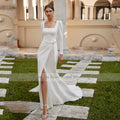 Elegant Square Collar Bridal Dress  Full Sleeves Mermaid Satin Wedding Gowns For Women  Side Slit Wedding Dresses Long 2025