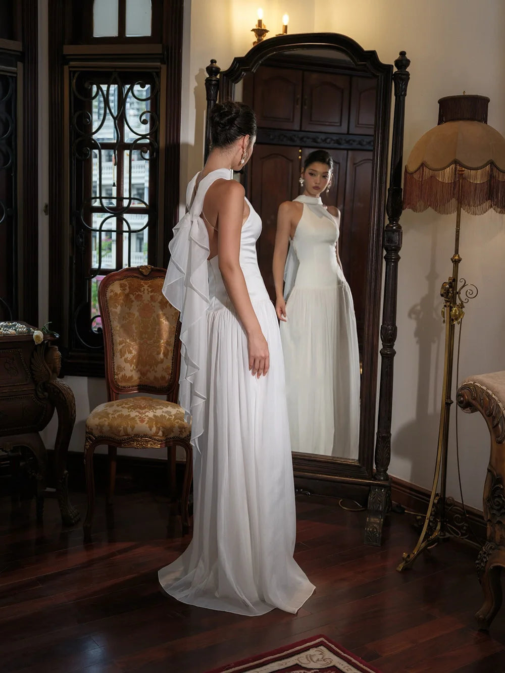 Elegant Wedding Dresses For Women Cape Halter Cloak Sleeveless Boho Bridal Gowns Robe De Mariée Customized Wedding Gown