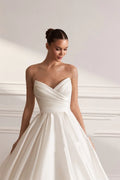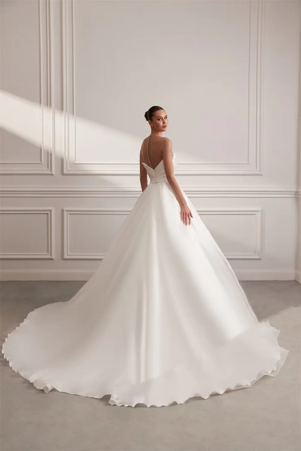Flavinke Customized Elegant Satin Wedding Dresses 2025 For Woman Bridal A-LINE Rhinestones Pleat Buttons Vestidos Novias Boda
