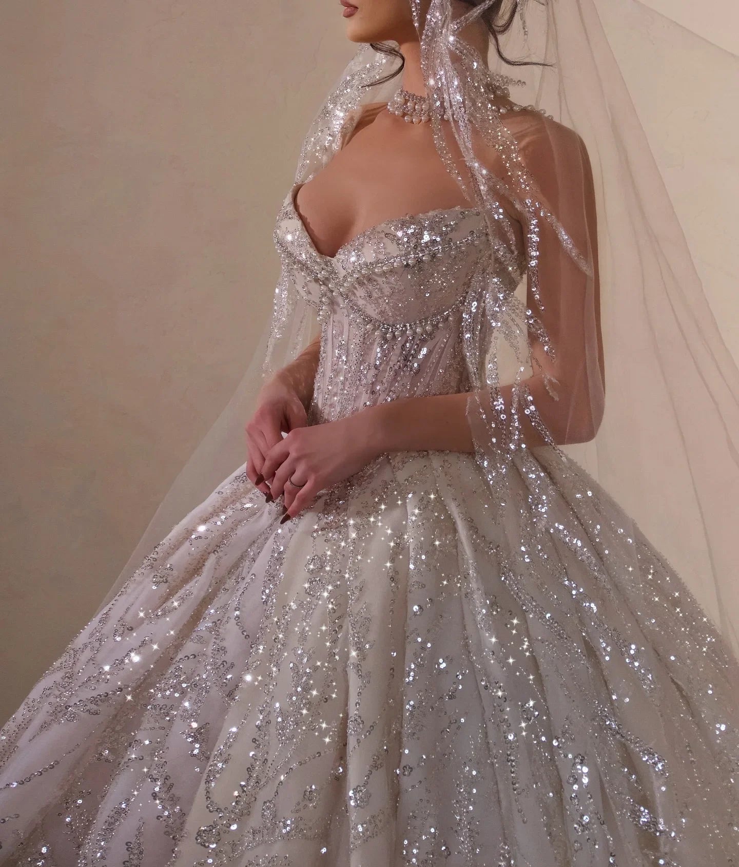 Flavinke Customized Wedding Dresses Sequins Pearls Bridal Ball Gowns Strapless Sleeveless Princess Bride Dress Vestidos De Novia