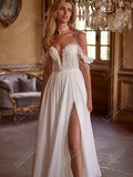 Graceful Wedding Dresses A Line Vintage Bridal Gowns Lace Appliques Off The Shoulder High Slit Vestidos De Novia Customized 2025