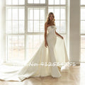 Hochzeitskleid Satin Mermaid Wedding Dress with Detachable Train Strapless Simple Brautkleid Bow Back Vestido De Noiva Sereia