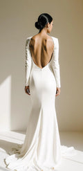 Step into modern elegance with our Minimalist Long-Sleeve Backless Wedding Dress, designed for the confident bride who values grace and simplicity.