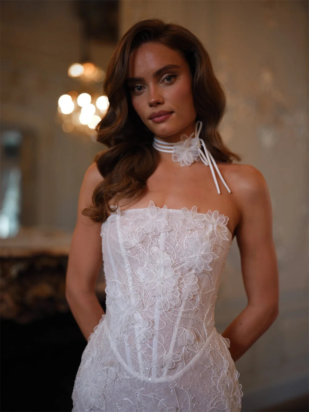 Kyoto Customized White Fairy 3D Appliques Wedding Dress Gorgeous Mini Strapless vestidos de novia Lace-up Back After Party Gown