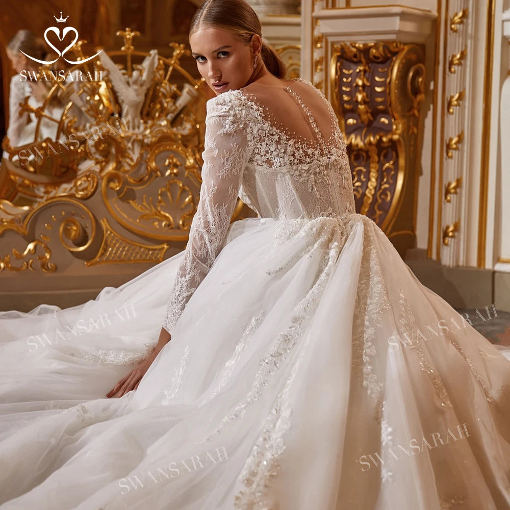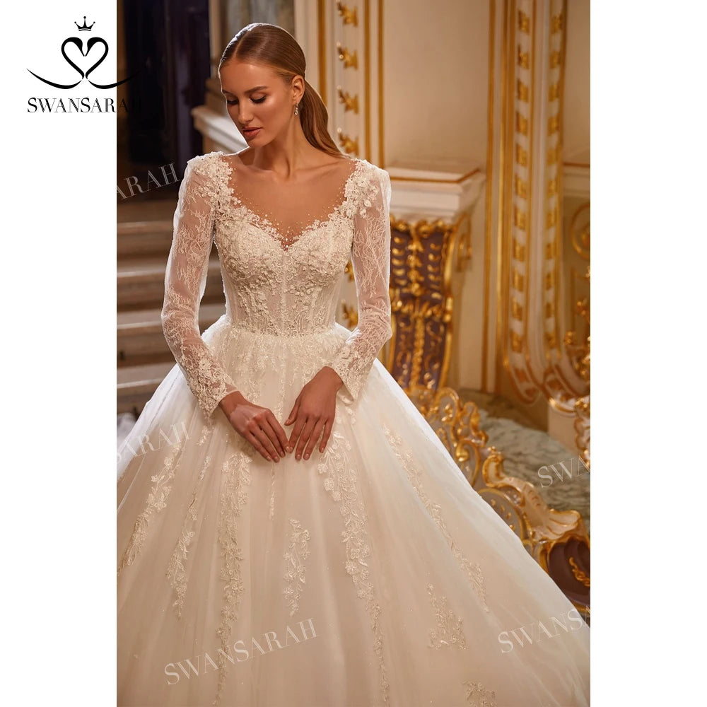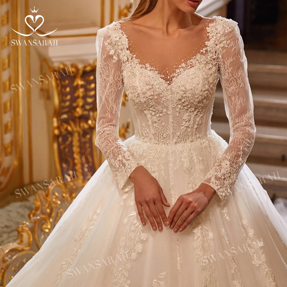 Long Sleeve Wedding Dress 2025 Sweetheart Appliques Bride Ball Gown Royal Train customized SwanSarah AS141 Vestido De Novia