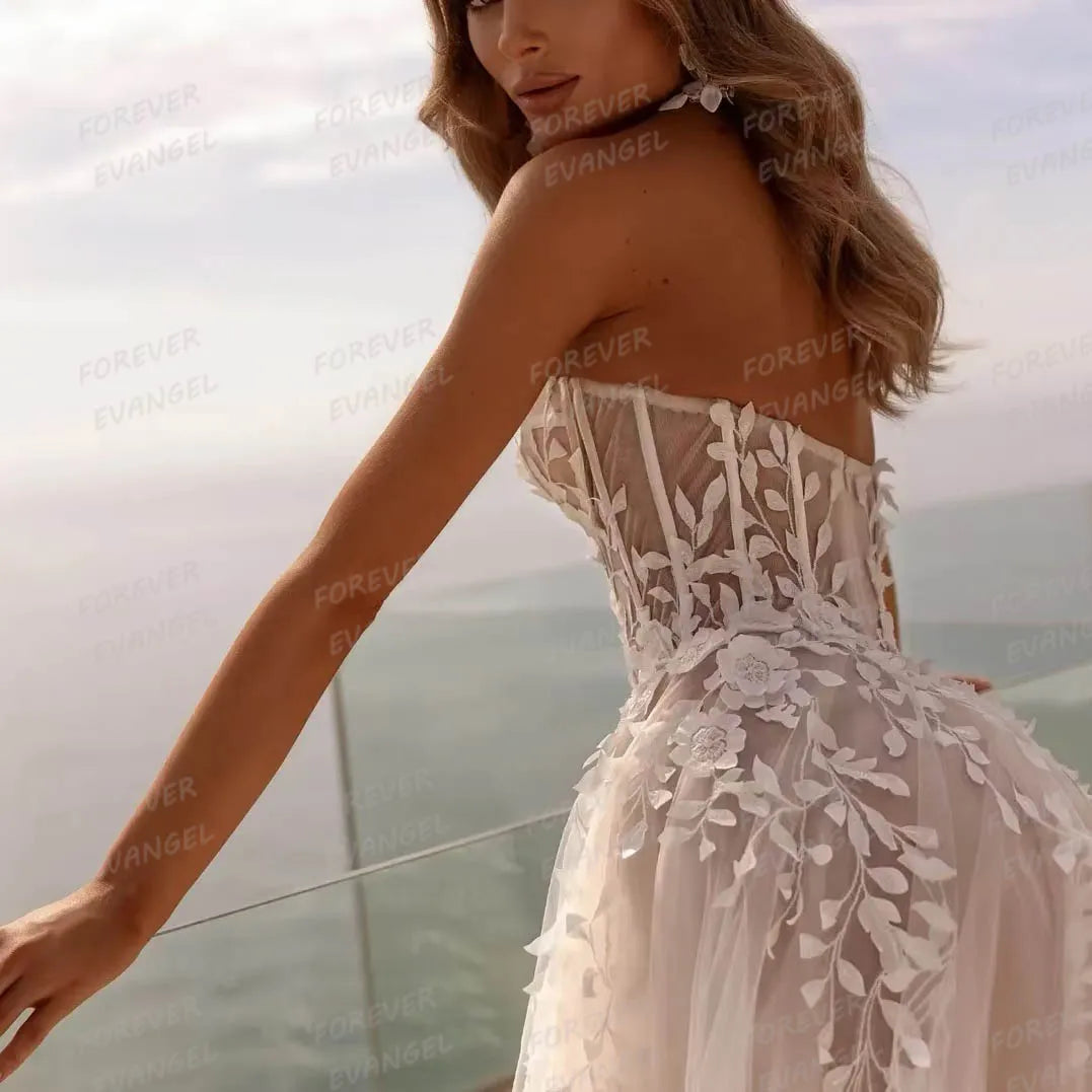Luxury Appliques Princess Wedding Dresses Woman's A-Line Sexy Appliques Sweetheart Sleeveless Bride Gowns Vestidos Customized