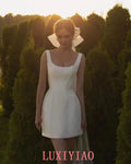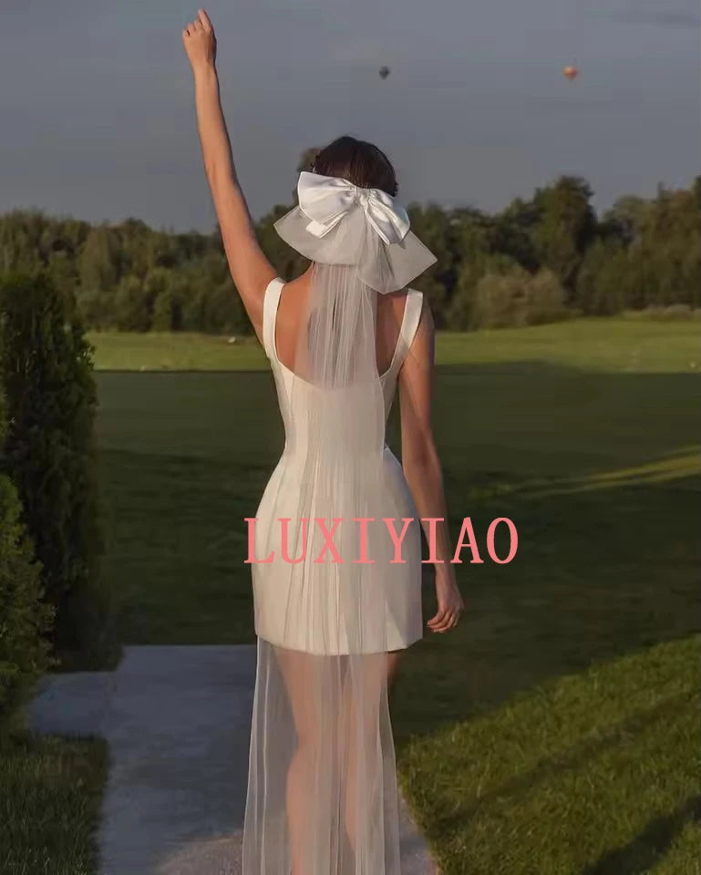 Mini Short Wedding Dresses Square Necking Boning Fitted Bodice Elegant Partys Bride Dresses Vestidos de novia Customized