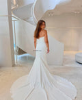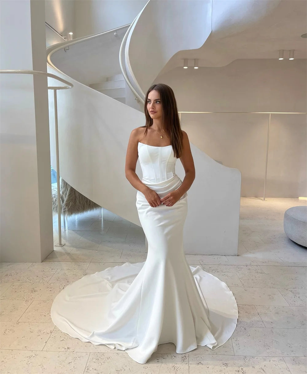 Modern Scoop Neckline Satin Mermaid Wedding Dresses Side Slit Custom Made Bridal Grown 2025 Vestido De Noival