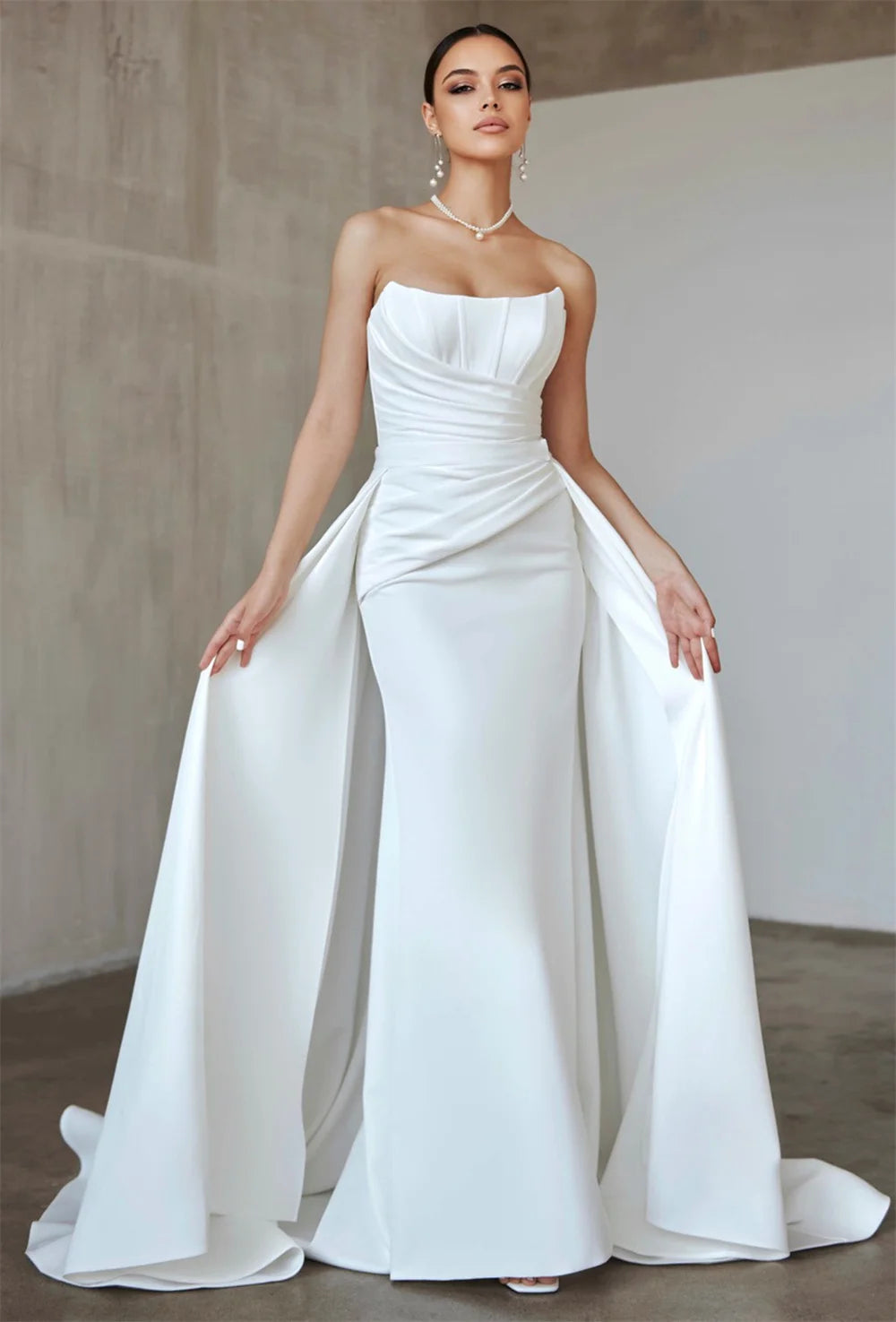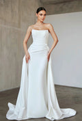 Popular Scoop Neckline Pleat Mermaid Wedding Dresses With Detachable Train Custom Made 2026 Rode De Morrie
