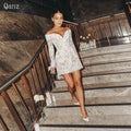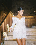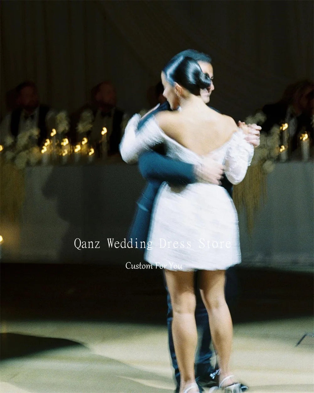 Qanz Short Mini Lace Wedding Dress Morden Bridal Gown Vestidos En Oferta Liquidación Long Sleeves Wedding Party Dress Customized