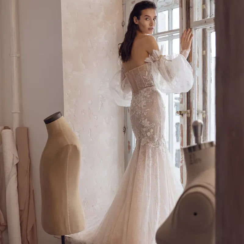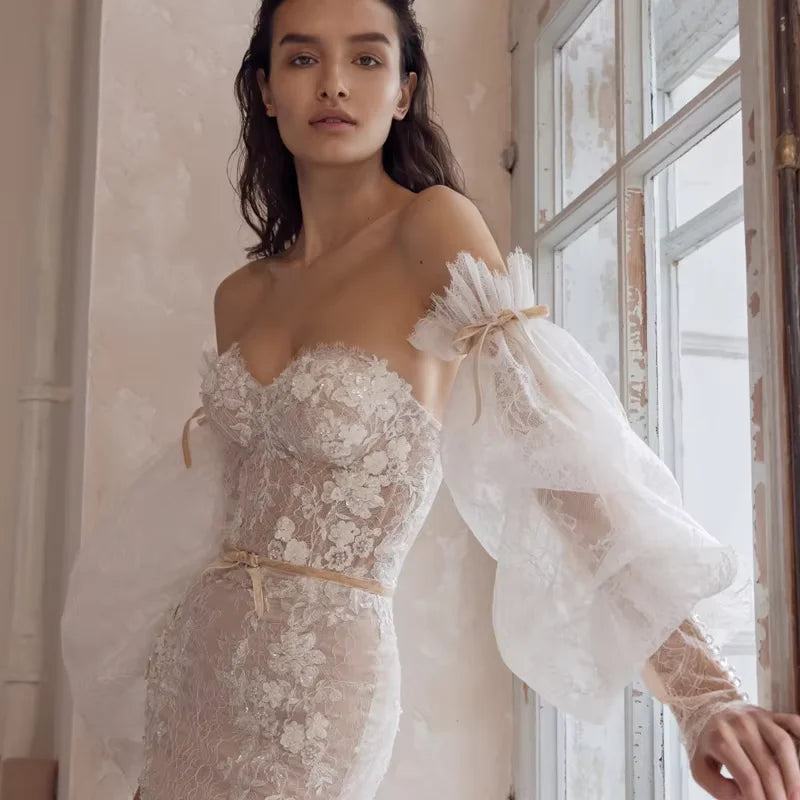 Romantic Mermaid Customized Applique Backless Wedding Dresses Sweetheart Off Shoulder Bride Dress For Women Vestido De Noiva