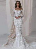 Sexy Mermaid Wedding Dresses Lace Flower Ball Gowns Long Sleeve Backless Buttons Sweetheart Court Train Formal Party Customized