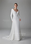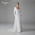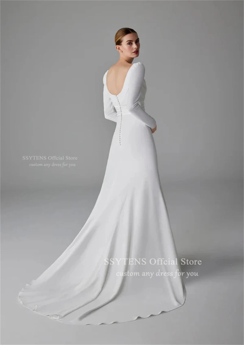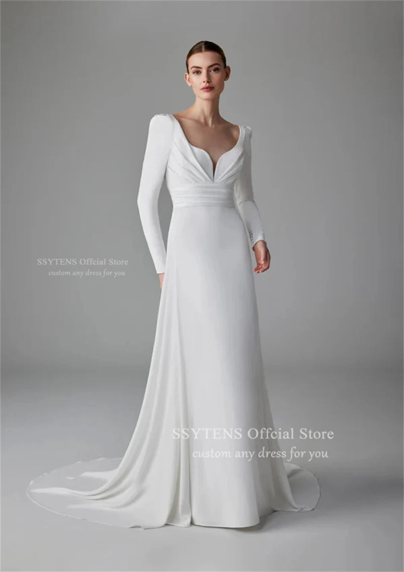 SSYTENS Simple Civil Wedding Dresses Satin Open Back Customized Long Sleeves Bridal Gowns Bride Dress Royal Engagement Dress