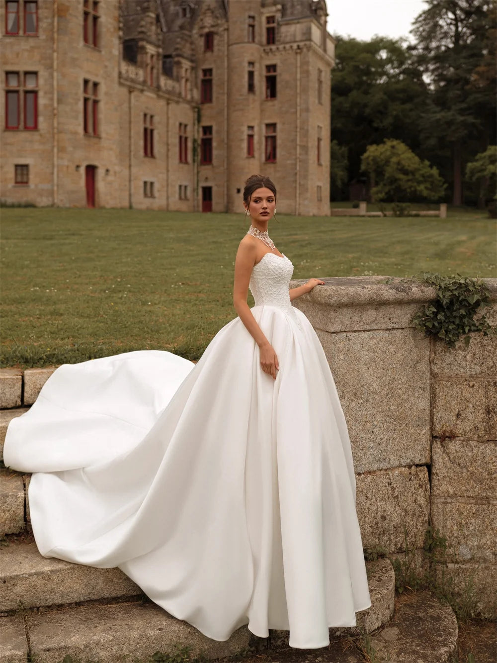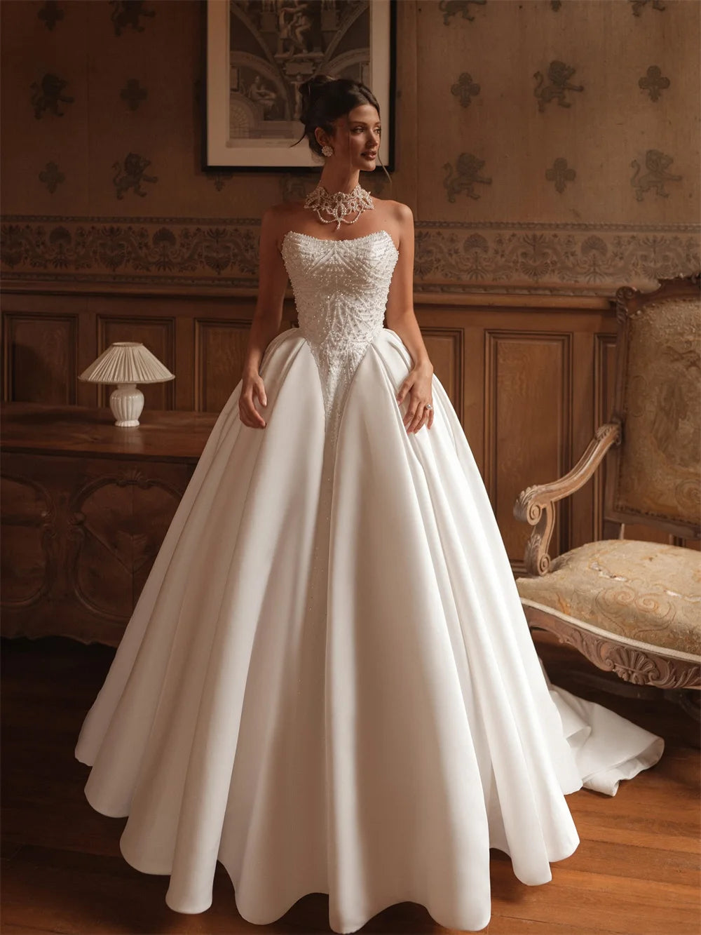 Stunning Beaded Sequined Scoop Neckline Satin Brial Grown A Line Wedding Dresses Custom Made 2026 Vestido De Noival