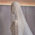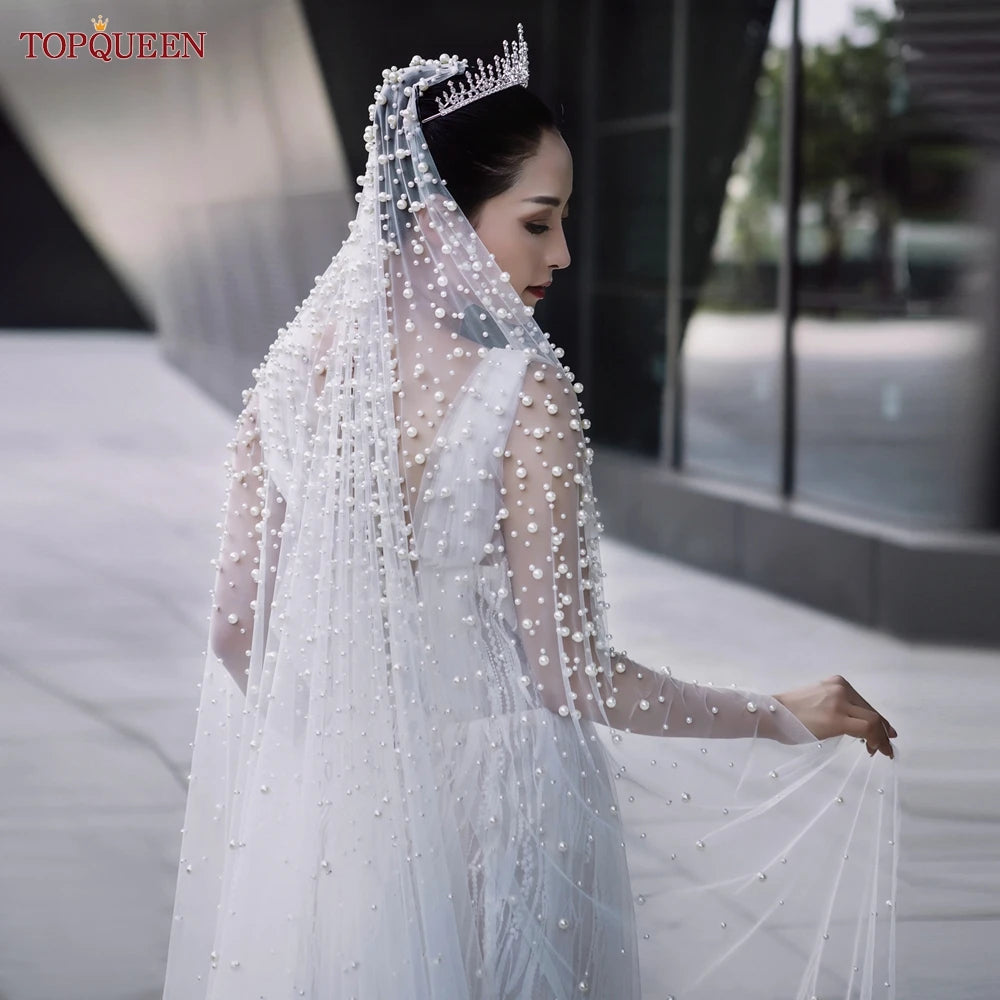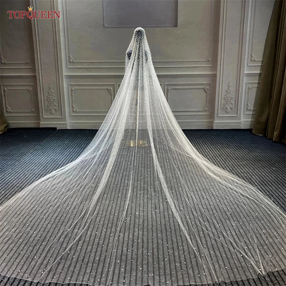 TOPQUEEN V139 Luxurious Wedding Veil with Pearls 5 Meter Long Bridal Veils Delicate Beaded Cathedral Length Veil Customizable