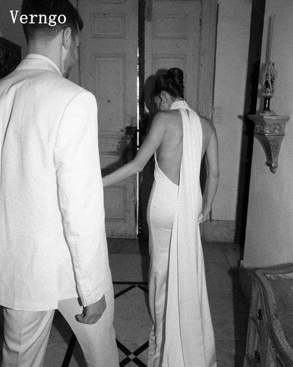 Verngo lvory Crepe Wedding Dress Halter Mermaid Sexy Bridal Gowns Women Backless Classy Bride Dress Customized