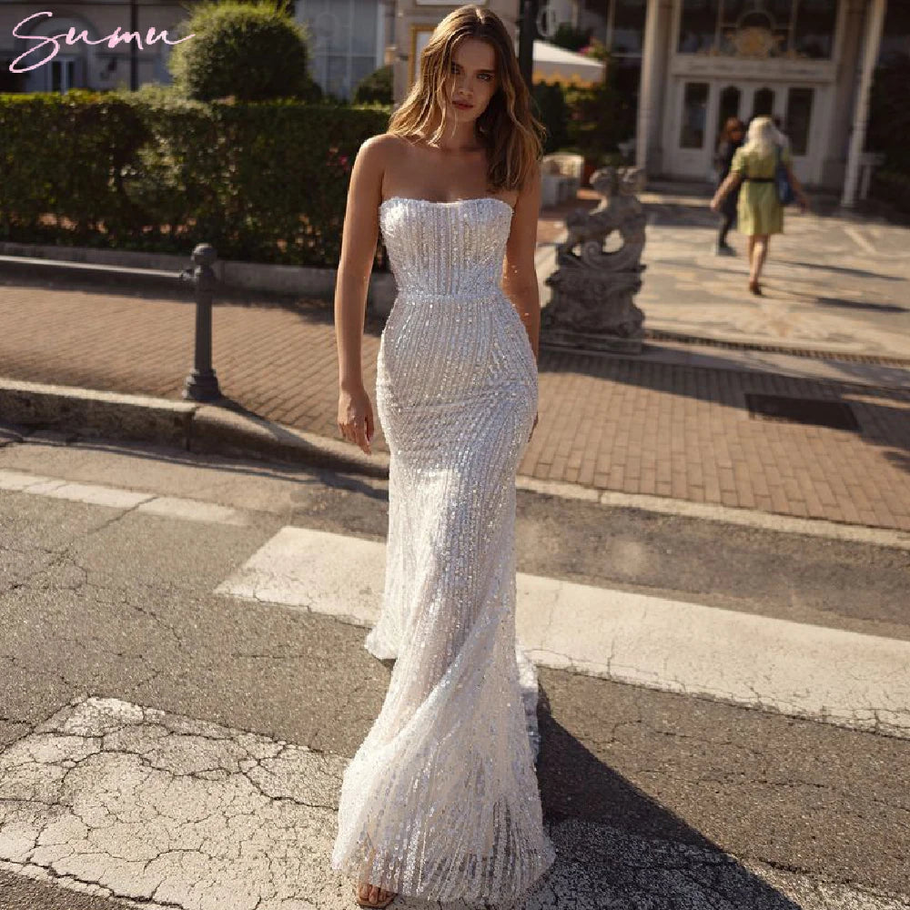 White Sweep Train wedding dress 2025 Pearls Mermaid Wedding Dresses Lace-Up Customized جديد في الفساتين
