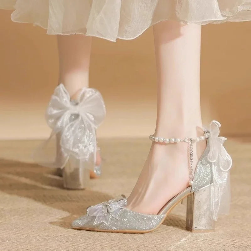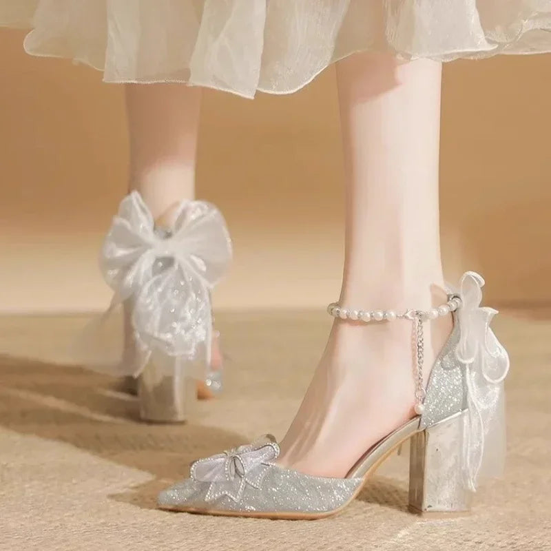 Women's Summer Shoes Wedding Party Versatile Woman High Heels Sandals Sweet Princess Beading Ankle-strap Ladies Dress Sandals