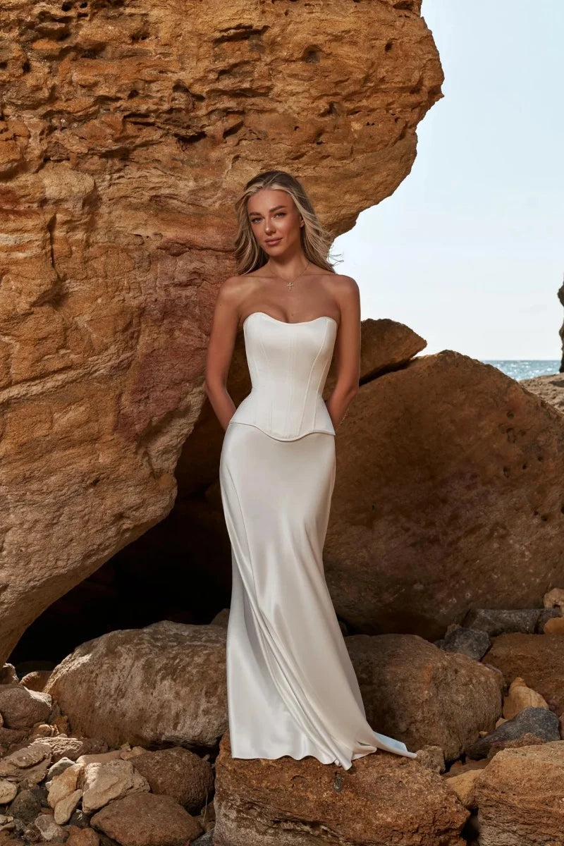 Annie Off-shoulder Satin Waist Prom Dresses White Elegant Lady Evening Dresses Corset Formal Robes De Soirée Customized