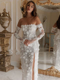 BEBEKEY Customized Luxury White Evening Dress with 3D Beaded Flower Dubai Women Wedding Party Gowns Elegant Prom Dress Robe